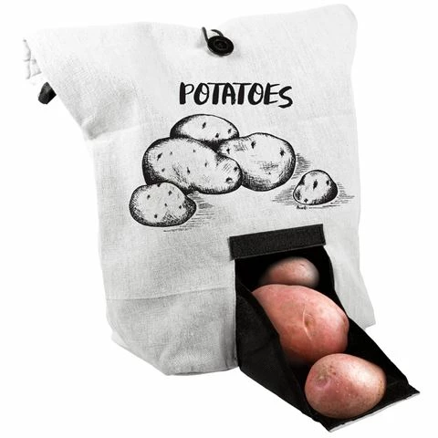 Keep your potatoes neatly stored with the Avanti Potato Storage Bag. Its linen look fabric and blackout lining are both breathable, allowing air to circulate around the potatoes whilst blocking out light and moisture to prevent sprouting. It features an easy access front flap that dispenses older potatoes first helping minimise waste, and a flat base and gusseted sides that allows bag to stand up in a cupboard or pantry. Wide opening top for easy filling has a stylish roll over and button tie fastening to keep freshness in.