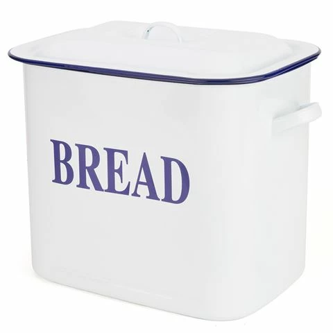White & Blue Enamel Bread Bin features: