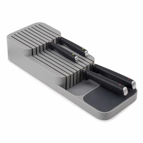 Store your sharp knives safely in your cutlery drawer with this compact knife organiser, it has 2-tiers for easy access and can hold up to nine knives of different blade lengths.