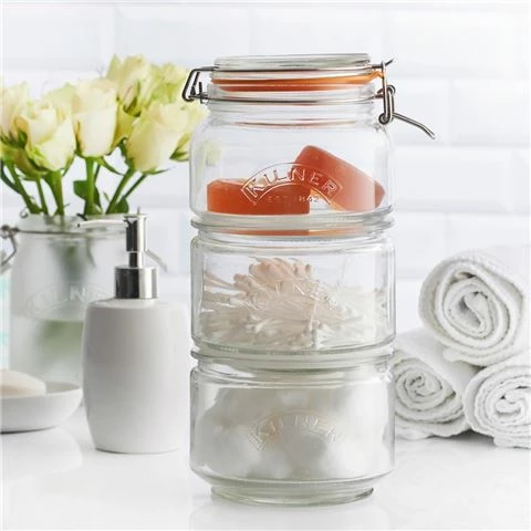 Whether its chutneys and condiments or homemade cookies, Kilner’s Stackable Jar Set stores your favourite foods in style. Perfect for those with limited kitchen space, this set includes a top jar with a clip-top lid, as well as two additional jars with silicone seals that, when stacked together, work to keep your foods fresher for longer.